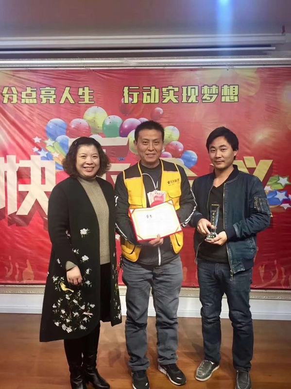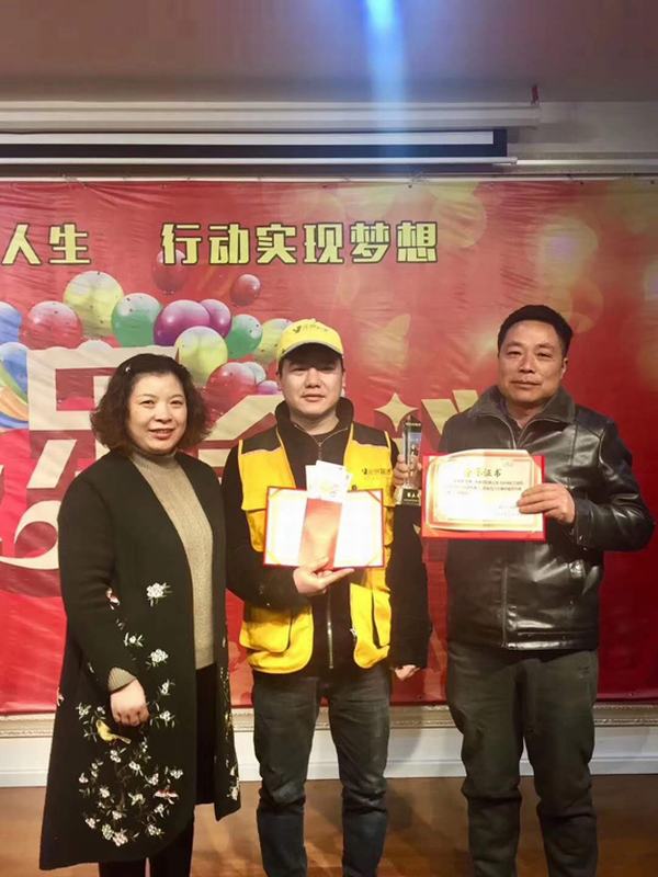 劉總為瓦工師傅頒發(fā)獎狀